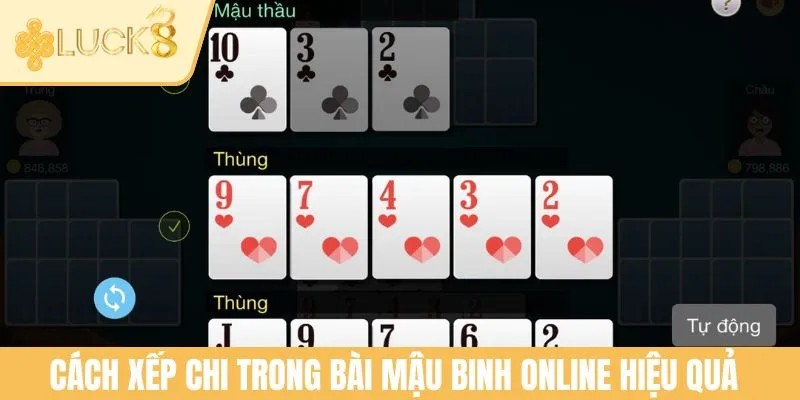 - Bước 3: Việc xếp bài cần kết hợp tư duy logic và kinh nghiệm. Hội viên nên ưu tiên để chi mạnh nhất ở cuối hoặc phân bố lực lượng đồng đều để tránh bị thua cả ba chi.
